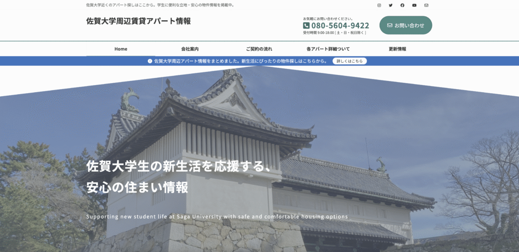 この度、佐賀大学周辺アパート情報の公式ホームページをリニューアルいたしました。